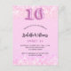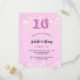 Um convite moderno, na moda e glamouroso para uma festa de aniversário Doce 16, 16. Um fundo cor-de-rosa com confete. O nome é escrito com um moderno estilo escrito à mão. Personalize e adicione os detalhes da sua festa. O número 16 é escrito com uma fonte de estilo de balão, script.