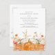 As abóboras de queda estão aninhadas em delicadas flores silvestres amarelas do ouro e laranja para criar uma estética elegante. Todo o texto é editável para que você possa facilmente artesanato seu próprio humor especial.
