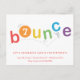 Este convite de aniversário de salto apresenta letras saltitantes em uma paleta arco-íris de cor neutra do gênero, vermelha, laranja, amarela, verde, azul e roxa, com idade editável no O. Uma tomada super divertida e neutra do gênero em um trampolim, ginástica ou festa de salto. Este convite é inspirado por todas as crianças que gostam de saltar, saltar e voar. Clique em editar para personalizar.