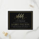 Cartão-postal da Surpresa Dourada e Negra Convite para Designs Eugene. Envie esses convites minimalistas de preto e ouro e comece sua festa surpresa ao estilo! Na frente, em um script de estilo manuscrito a na moda é o texto "shhh..." em folha de ouro falsa.
