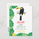 Convite de cartão postal da Festa de Aniversário Frutas Tutti Frutti do Tucano Tropical. Lindo material personalizado para festa de aniversário com tema de tucano tropical e tutti frutti. www.SamAnnDesigns.com