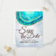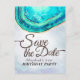 Festa de aniversário Salve A Data Modelos De Cartões De Aviso De Convite - Elegante Turquesa De Cores De Água E Fatia De Geodo De Agato Dourado. Um Design perfeito para o seu grande dia. Todo estilo de texto, cores, tamanhos podem ser modificados para ajustado das suas necessidades!