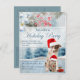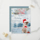 Uma cena de inverno com neve nas cores azul-verde-claro azul e Papais noeis vermelhos brilhantes nos seus animais favoritos
