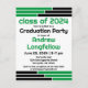 Envie este Cartão-postal de Festa de formatura de Bares Verde e Preto à sua família e amigos. Personalize com seu nome de formando, ano de classe e detalhes da festa. Estes convites para cores verdes e negras são uma na moda para mostrar o seu espírito escolar.