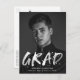 Convide convidados para comemorar os convidados com nossos convites para festa de formatura de fotos do Modern Paint Splatter. O design apresenta a foto vertical do formando com "Formando" em letras brancas com placas de tinta brancas. Personalize a frente dos convites para festas de formatura criativas adicionando o nome do formando, o nome da escola e o ano de graduação. A parte traseira do cartão postal de festa de formatura apresenta o endereço de devolução e os detalhes da festa. O design é perfeito para usar tanto para segundos graus como para formandos universitários.