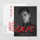 Convide convidados para comemorar os convidados com nossos convites para festa de formatura de fotos do Modern Paint Splatter. O design apresenta a foto vertical do formando com "Formando" em letras vermelhas com placas brancas de tinta. Personalize a frente dos convites para festas de formatura criativas adicionando o nome do formando, o nome da escola e o ano de graduação. A parte traseira do cartão postal de festa de formatura apresenta o endereço de devolução e os detalhes da festa. O design é perfeito para usar tanto para segundos graus como para formandos universitários.