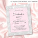 Imagem metálica prateada escura e fundo cor-de-rosa esbranquiçado decorado com pó cintilante prateado sujo. Personalize e adicione um nome e detalhes da parte. Escrito preto, elegante. Dica: Se você não quiser que pareça um cartão postal, clique em personalizar, vá para o verso e remova o divisor e o carimbo de posto.