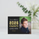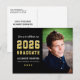 Anuncie e celebre com este convite de festa de formatura moderno com cartão postal, apresentando um design ousado preto e dourado “Formado em 2026” combinado com uma grande foto de formatura. A tipografia limpa e esportiva e os destaques de estrelas criam um visual clássico e masculino. O verso coordenado inclui um layout de envio claro com espaço para detalhes da festa e endereço do destinatário.
