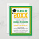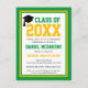 Este Cartão-postal de convite para Festas de formatura verde e Dourada é uma forma excelente de celebrar o segundo grau ou formando universitário. Personalize isso com o nome, a escola, o ano e os detalhes da festa. Este convite apresenta uma tipografia ousada em cores verdes e douradas, com bordas verdes e douradas.