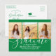 Cartão Postal De Convite Festa de formatura Verde moderno e 3 fotos brancas