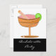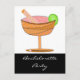 Um belo convite a uma festa de solteira que apresente uma bebida rosa num copo com sombreado laranja. Uma palha suja e um limão a destacam.