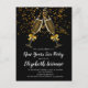 Óculos de champanhe com fitas de ouro e confete de ouro em preto; convites de festas postais de Ano Novo. Personalize a sua grande festa de véspera de Ano Novo.