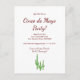 Convite para festa no deserto do Cinco de Maio, com um grupo de imagens de cactos saguaro verdes e letras de tipografia vermelha personalizável. Este item fofo é ótimo para a sua festa festiva em maio!