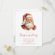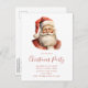 Cartão postal de convite de festas com uma ilustração fofinha do estilo retrô. Papai Noel com uma barba branca e arbusta vestindo seu terno vermelho tradicional.