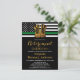 Convites à Reforma Militar da Linha Verde fina. Celebre anos de serviço dedicado, sua aposentadoria militar e convide amigos e familiares para o seu partido militar com esta bandeira moderna linha verde fina com o Dourado Convite à Reforma Militar do Exército. DESIGN americano na Polícia de Sinalizador, cores modernas, preto branco verde e design de ouro. Este convite à reforma militar é também perfeito para a graduação militar, para o soldado que vai embora parte, para destacamentos e para o regresso a casa, para mudar de local na personalização. Veja nossa coleção para combinar presentes de aposentadoria militar, favoritos para festas militares de aposentadoria e suprimentos. COPYRIGHT © 2021 Judy Burrows, Black Dog Art - Todos Os Direitos Reservados. Cartão-postal de Convite de festas de aposentadoria de linha verde fina militar inicializa