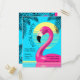 Cartão Postal De Convite Festa na Piscina Flamingo Float Retro Verão Tropic