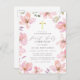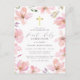 Este elegante convite de primeira comunhão sagrada apresenta uma cruz cristã de ouro falsa sobre uma tipografia elegante da escrita. Enquadrar estas são lindas flores cor-de-água rosa. Um convite para a comunidade floral sagrada, perfeito para qualquer tema.
