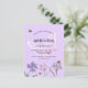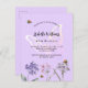 Um fundo colorido violeta e lavanda. Decorados com abelhas e pintados de flores silvestres em violeta, rosa e uma borboleta grande. Personalize e adicione um nome e detalhes da parte.