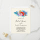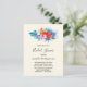 Convites de chá de panela com um vibrante e belo buquê de flores tropicais. Orquídeas, hibisco e folhas tropicais. Cor rosa, turquesa, vermelha e laranja.