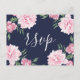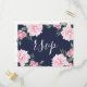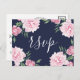 Cartão Postal De Convite Fundo Rosa de Peony e Marinho | RSVP