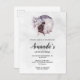 Convites de aniversário com uma pintura aquosa de um gato preto e um buquê floral rosa e roxo claro. Em frente a uma grande lua de cheio. Na moda e mágico.