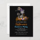 Cartão Postal De Convite Gato Preto de Aquarela com doces, Halloween