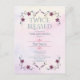 Cartão Postal De Convite Gêmeos a Caminho: Boho Floral & Aguarela Lavanda