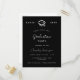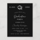 Um convite moderno e elegante para a festa de formatura. Um fundo preto, texto branco. Personalize e adicione um nome, ano e detalhes.