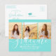 Cartão Postal De Convite Graduation Party Modern Script Teal Blue 3 Photo