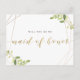 Cartões de convite para casamento "Você será minha Madrinha de casamento", projetados por personagem, com cor d'água verde e design de caligrafia dourada.