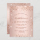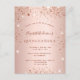 Um convite moderno, na moda e glamouroso para uma Quinceañera, festa de aniversário 15. Um fundo metálico rosa dourado falso com brilho falso. O nome é escrito com um moderno e escuro, rosa dourado, escrito com letra de estilo manuscrito. Personalize e adicione os detalhes da sua festa. Traseira: rosa dourado e cintilação falsa, design postal. Dica: Se você não quiser que pareça um cartão postal, clique em personalizar, vá para o verso e remova o divisor e o carimbo de posto.