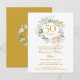 Com uma delicada guirlanda de flores de aguarela, este convite de aniversário de casamento de 50 anos botânico chique pode ser personalizado com as informações do seu aniversário especial. O verso apresenta uma guirlanda floral correspondente emoldurando as datas do seu aniversário em texto dourado elegante sobre um fundo dourado. Desenhado por Thisisnotme©