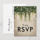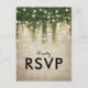 Cartões-postais de resposta de casamento de conto de fadas mágico com um fundo de parede de tijolo de pedra rústica, videira de hera verde com luzes cintilantes e um modelo de resposta moderno.