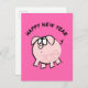 Ilustração de desenho animado engraçado de um porquinho rosa (ilustração n°4) em fundo transparente com textos personalizáveis: FELIZ ANO NOVO e 2019. Você pode facilmente alterar o texto (fonte, tamanho, cor e posição) e a cor do fundo clicando no botão personalizar. Design em cartão postal de felicitações vertical com fundo rosa. Disponível com outras ilustrações de desenho animado engraçadas. Cartão de felicitações, roupas, produtos para casa, produtos para escritório e muito mais... Perfeito para o Ano Novo Chinês do Porco 2019 ou Aniversário (pessoas nascidas no ano do Porco). -- "O Porco (豬) é o décimo segundo e último signo dos Ramos Terrestres (亥). No ciclo sexagenário contínuo, cada décimo segundo ano corresponde a Hai, e é comumente chamado de "Ano do Porco" (豬年). Existem cinco tipos de Porcos, nomeados de acordo com os elementos chineses. Em ordem, eles são: Metal, Água, Madeira, Fogo e Terra.