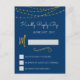 Luzes de String de Folha Ouro e Cartão de Resposta RSVP de Script Marinho Azul Simples e Elegante.