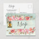 Cartão Postal De Convite Lanternas Florais Aquarela Verde Rústico Casamento