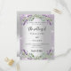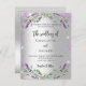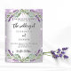 Um convite de casamento moderno e na moda. Um fundo de aparência pura prateada com brilho violeta, faíscas, flores de lavanda, flores e verde de eucalipto. Personalize e adicione seus nomes e detalhes.