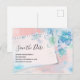 Cartão Postal De Convite Lindas Flores Azuis em Save the Date Rosa