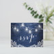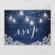 Cartão de Resposta RSVP de Casamento com Luzes de Jarro de Pedra Azul Meia-Noite e Renda Rústica.