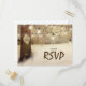 Cartões-postais de RSVP de casamento em floresta de Natal com árvores de inverno cobertas de neve, um coração esculpido com suas iniciais, luzes cintilantes e um modelo de resposta de casamento moderno.