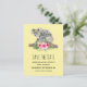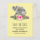 Salve a data de aniversário / chá de fraldas / outro cartão postal de evento com um adorável design de aquarela. Mãe e bebê do urso Koala. O bebê está andando nas costas da mamãe. Em pé em um galho de árvore. Um buquê de flores de hibisco debaixo deles. Fundo amarelo de banana.