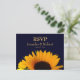 Cartão Postal De Convite Marinho de girassol alegre RSVP de Casamento Azul