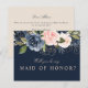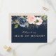 Cartão Postal De Convite Marinho floral, você será meu cartão de Madrinha d