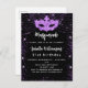 Cartão Postal De Convite Máscara de brilho roxo preto de mascarada