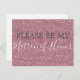 Cartão Postal De Convite Matrão de Honra Rosa Faux Glitter