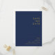 Este cartão postal de convite moderno minimalista azul marinho | ouro é perfeito para o seu casamento boho sofisticado. Seu design abstrato simples e único, acompanhado por uma fonte minimalista contemporânea e uma paleta de cores azul marinho escuro, dá a este produto um sentimento de luxo formal elegante, mantendo-se simples e sofisticado boêmio. Deixe como está ou personalize com arte ou gráficos de sua escolha!