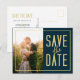 Cartão Postal De Convite Moderno Simples Elegante Azul Foto Save The Date