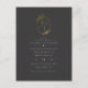 Cartão Postal De Convite Monograma de Folha Preta e Dourada | Casamento de