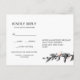 Cartão de resposta de RSVP simples e elegante com seleções de refeição ou prato principal com um ramo de folhas pretas e cinzas e flores delicadas cor-de-rosa.