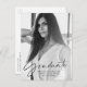 Convide convidados para comemorar o formando com cartões postais de convite para festa de formatura de fotos modernos. Os convites elegantes de cartão postal de festa de formatura apresentam a foto vertical do formando com "Formando" em uma camada de script preto na moda. Personalize a frente dos convites para festa de formatura de fotos adicionando o nome do formando, o nome da escola e o ano de graduação. A parte traseira do cartão-postal contém o endereço de devolução e os detalhes da festa de formatura. Os convites para festas de formatura são perfeitos para formandos segundos graus e universitários.
